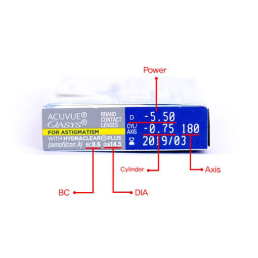 Cylinder -0.75, -1.25, -1.75, -2.25, -2.75 Axis 10, 20, 90, 160, 170, 180
